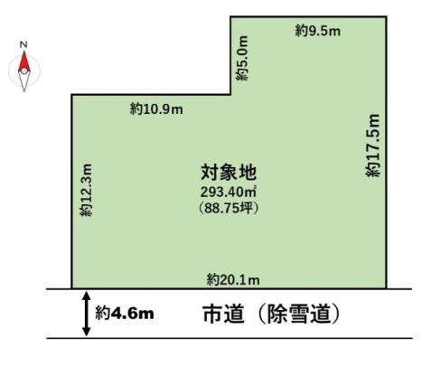 | 現況/引渡し | 更地/相談 | 接道状況 | 接道: 南 20m 公道 道路幅: 4.6m |